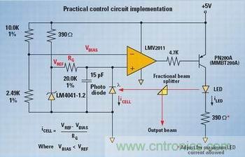 在很多利用光來控制一個過程的應用中,維持恒定的光強度至關重要。有些系統采用簡單的LED或激光二極管作為光源,但是隨著時間的推移,即便最初校準得很好的光源也會變差。隨著LED的老化,其電流-發光轉換比率會降低,發光強度也會變弱。要長期保持工廠設定的發光強度需要一個控制電路來監控發光狀況,并控制供給光發射器件的電流以保持輸出恒定。這種配置適合以下應用:用于精確光強度測量的光強度測定應用、針對伺服系統精確光定位的控制應用,以及光參考測試設備等。圖1所示為這種系統的組成示意圖。