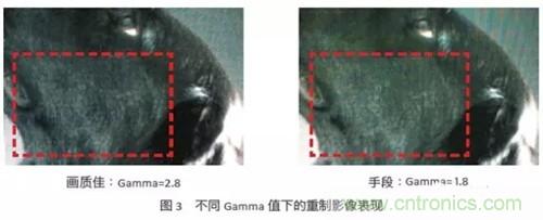 如果不采用提高LED順向電流的方式來掩蓋上述的缺點(diǎn),另一種手段就是調(diào)整小點(diǎn)間距LED顯示屏的gamma曲線,灰階的亮度對于正確的影像重制是非常重要,因?yàn)樵谝曈嵲粗辛炼劝舜蟛糠莓嬅鏀?shù)據(jù)。如圖3,右邊的圖像gamma值較小,代表中間色調(diào)的亮度太高,因此,整體畫面刷白又缺少深度,圖像上的細(xì)節(jié)損失不少,相較于左圖,右圖中的狗毛沒有那么有層次。