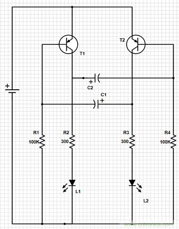 改變電容值將改變LED閃爍的速度。