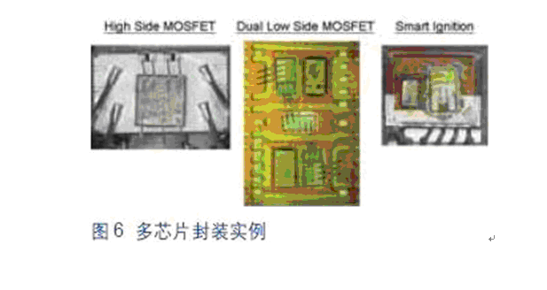 圖6所示為目前車載系統(tǒng)中采用多芯片封裝的幾個(gè)實(shí)例。這些智能化器件可以提供更高的系統(tǒng)性能監(jiān)控能力,通過集成保護(hù)功能提高功率系統(tǒng)的可靠性。如過流、過壓和過熱保護(hù)等功能都是這類產(chǎn)品的標(biāo)配。當(dāng)器件感測(cè)到有可能發(fā)生上述異常狀況時(shí),能夠把功率MOSFET置于自我保護(hù)整個(gè)系統(tǒng)的環(huán)境中。此外,這些器件還集成有附加診斷功能,用以監(jiān)控負(fù)載開路或短路,有助于指導(dǎo)汽車機(jī)械裝置隔離和糾正車輛中出現(xiàn)的問題。