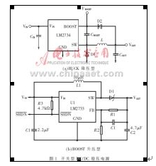 圖1為二款不同功能的開關型DC/DC轉換電路。它們具有轉換效率高、重量輕,既可以升壓,又可以降壓,輸出功率大等特點。由于其轉換效率高,電路中元器件的發熱量相對較小。由于電路處于較高頻率的開關工作狀態,只需采用小容量、小體積的濾波電容即可見效。對輸入源電壓波動的容裕范圍比較寬。