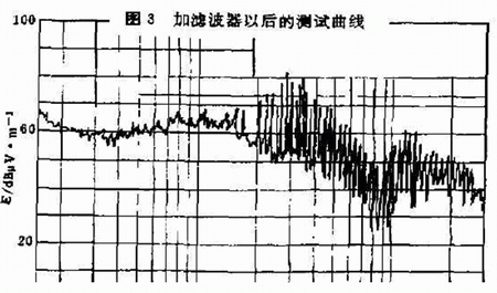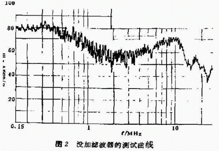 我們知道,架空的輸電線(xiàn)上不可避免地會(huì)檢拾到各種高頻輻射干擾,這種干擾往往以共?;虿钅P问匠霈F(xiàn),從而在電源線(xiàn)上產(chǎn)生傳導(dǎo)干擾,通過(guò)正確的接地,可以抑制這種干擾,但只是在一定程度上的改善,因而可以加濾波器予以抑制(見(jiàn)測(cè)試曲線(xiàn))。
