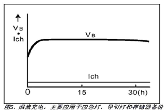 較高的充電電流并不會使充電時間縮短太多。較高的充電電流能較快達(dá)到電壓峰值,但是浮充需要較長時間。通常,浮充時間是初始充電時間的兩倍。