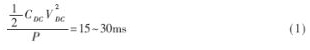 式中,P為逆變器輸出功率,VDC為直流側電壓,CDC為直流側電容容量。經計算得到需要的電容容量為0.0175F≤CDC≤0.035F。實際系統中的電容容量為20000μF。