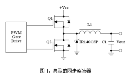 圖1示出了由一個高側MOSFET(Q1)和低側MOSFET(Q2)組成的典型同步整流器,為了實現最佳的同步整流器設計,這兩個MOSFET需要具備不同的特性。一般來說,您可以通過搜尋一個具有最低Qswitch×RDS(ON)性能因數的器件來選擇最佳的Q1 MOSFET。Qswitch被定義為柵-源極電荷的后柵極臨限部分與柵-漏極電荷之和(Qgs2 + Qgd)。相比之下,最佳的Q2 MOSFET必須擁有非常低的RDS(ON)以及良好的Cdv/dt抗干擾。由于Q2的漏極與轉換器的開關節點相連,因此,它承受著地電位與Vin之間的瞬變電壓。隨著Q1的導通和關斷,漏極電壓會以dV/dt的速率進行變化,該變化將被容性耦合至Q2的柵極,并能夠引起一個足以使MOSFET導通的電壓尖峰,從而產生擊穿電流。因此,必須最大限度地減小Qgd/ Qgs1(柵-漏極電荷/臨限前柵-源極電荷)之比率以降低Cdv/dt導通電位。
