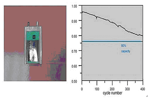 (圖九) 高容量納米鋰電池外觀與與循環壽命圖