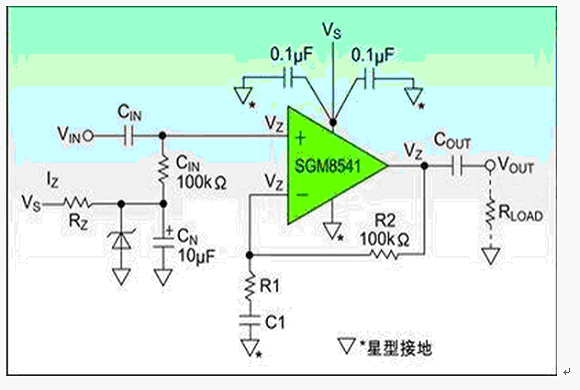 - SGM8541運算放大器增強電源抑制能力。