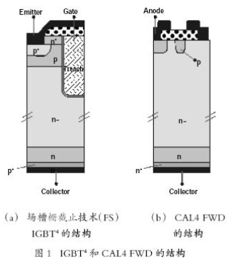 圖1(a)顯示了基于英飛凌溝槽柵場截止(FS)IGBT4 技術和賽米控CAL4 續流二極管的新一代芯片的基本結構。