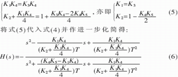 其中i=1,2,3,4,5。通過雙線性變換把式(3)轉化為連續時間傳遞函數模型: