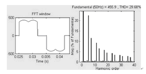 圖3 未加載有源濾波器時的電流波形和諧波