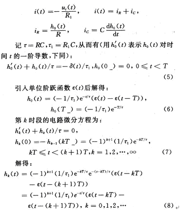由于電子開關周期性切換,RC電路對外電路的影響表現(xiàn)為:下一時段的輸出電壓初值是上一時段末時刻輸出電壓值乘(-1),即: