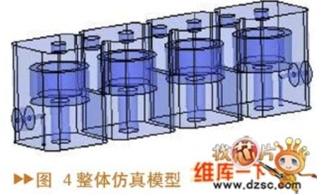 通過(guò)與前面計(jì)算的耦合系數(shù)理論值的比較,可以選擇合適的耦合孔及耦合螺釘?shù)某跏贾到⒄w仿真模型(圖4)。一般這種初始值進(jìn)行整體仿真的結(jié)果與期望的濾波器指標(biāo)有一定的偏差,通過(guò)調(diào)節(jié)耦合螺釘?shù)纳疃取⒓?lì)的位置以及頻率調(diào)諧螺釘?shù)纳疃瓤墒篂V波器達(dá)到期望的指標(biāo)。