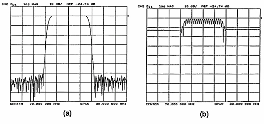 圖 3 SAW 濾波器的的直通信號(hào)抑制好(a)和差(b)對(duì)頻響的影響