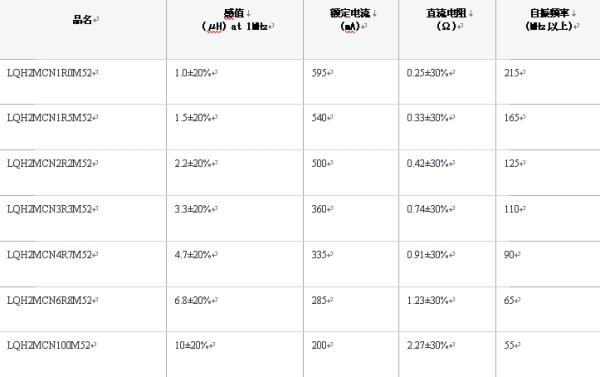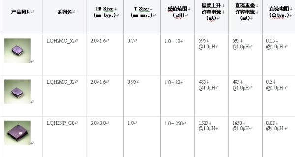 - LQH系列產品中最小最薄的是LQH2MC_52系列