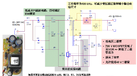 除了可以省去光耦器,由于采用無篏位設(shè)計(jì)還可以再省去四個(gè)元件。除了這些節(jié)省外圍元件帶來的成本節(jié)約,由于采用了優(yōu)化的PI MOSFET技術(shù),適合100kHz工作,還可以減小變壓器的尺寸和成本、降低輸出電容容量,這些都能進(jìn)一步降低成本。而高于70%的效率,使其可以使用低成本的AWG28電纜。芯片本身的價(jià)格也不貴,100,000片訂貨量的單價(jià)為0.42美元,今年三月即可實(shí)現(xiàn)量產(chǎn)。