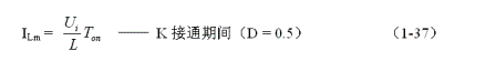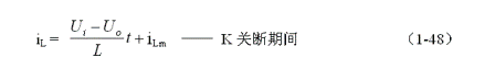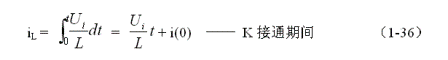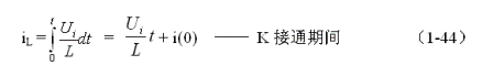 (1-44)式中iL為流過儲能電感L電流的瞬時值,t為時間變量;i(0)為的初始電流,即:控制開關K接通瞬間之前,流過儲能電感L中的電流。當開關電源工作于臨界連續電流狀態時,i(0) = 0 ,由此可以求得流過儲能電感L的最大電流為: