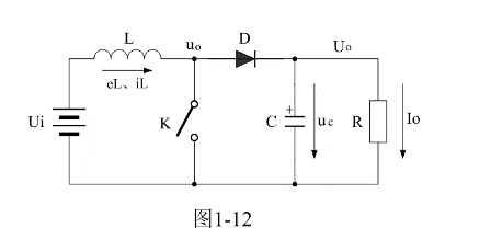 當控制開關K接通時,輸入電源Ui開始對儲能電感L加電,流過儲能電感L的電流iL開始增加,同時電流在儲能電感中也要產生反電動勢eL;當控制開關K由接通轉為關斷的時候,儲能電感也會產生反電動勢eL。eL反電動勢的方向與開關K關斷前的方向相反,但與電流的方向相同,因此,在控制開關K兩端的輸出電壓uo等于輸入電壓Ui與反電動勢eL之和。