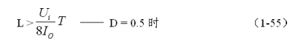 (1-54)和(1-55)式,就是計算并聯式開關電源儲能電感的公式。同理,(1-54)和(1-55)式的計算結果,只給出了計算并聯開關電源儲能濾波電感L的中間值,或平均值,對于極端情況可以在平均值的計算結果上再乘以一個大于1的系數。
