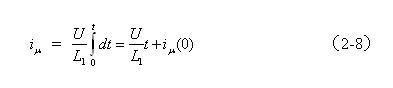 (2-8)式中, 為流過變壓器初級線圈的勵磁電流,E為加到變壓器初級線圈兩端的電壓,L1為變壓器初級線圈的電感量,t為時間,