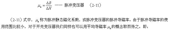 本上都是固定的,并且是單極性脈沖,其磁滯回線的面積相對來說很小,因此,鐵芯的脈沖導磁率幾乎可以看成是一個常數;而開關變壓器輸入脈沖電壓的幅度以及寬度都不是固定的,其磁滯回線的面積相對來說變化比較大,鐵芯導磁率的變化范圍也很大,特別是雙激式開關變壓器,因此,只能用平均導磁率