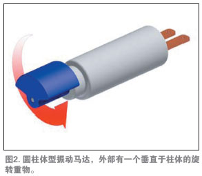 柱型馬達(dá)是采用傳統(tǒng)軸向設(shè)計(jì)的簡單有刷電機(jī),如圖2所示。用于多種應(yīng)用中,但由于體積較大,不適合在手機(jī)中應(yīng)用。柱型馬達(dá)在手機(jī)中需要較大的空間,直徑是所有振動馬達(dá)中最大的。