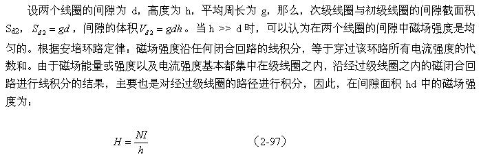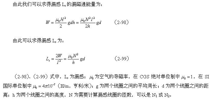 如果我們拿(2-99)式與(2-67)式或(2-94)式進行對比,可以看出,線圈漏感與線圈的電感是沒有本質區別的,只是磁路和磁通密度以及介質導磁率等參數需要根據實際情況來決定。