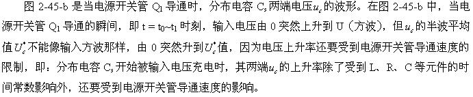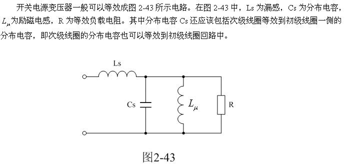 這里順便指出,圖2-45-b的波形是很難測量到的,因?yàn)樗旧隙荚谧儔浩鲀?nèi)部的分布電感Ls與分布電容Cs之間產(chǎn)生,但它會通過輻射對周邊電路造成干擾。