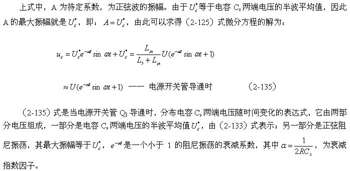 (2-122)式中,Cs為變壓器的總分布電容,Cs1為變壓器初級線圈的分布電容;C1為次級線圈電路中總電容C2(包括分布電容與電路中的電容)等效到初級線圈電路中的電容;n = N2/N1為變壓比。