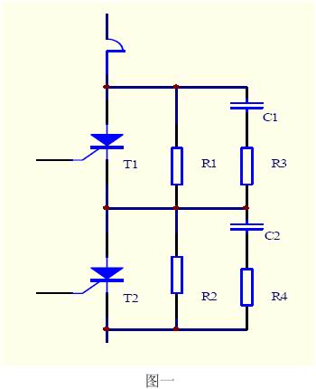 通常使用兩只晶閘管串聯(lián)工作以解決單只晶閘管耐壓不足的問題。這就需要解決晶閘管的工作電壓平均分配問題,包括靜態(tài)均壓與動態(tài)均壓。靜態(tài)均壓可采用無感電阻串聯(lián)分壓的方式解決;動態(tài)均壓比較復(fù)雜,這是因?yàn)椋涸?shù)dv/dt的差異以及反向恢復(fù)時間的差異導(dǎo)致開通與關(guān)斷過程中元件承受的電壓分配不均,極端情況可使支路電壓全部加在一只晶閘管上。