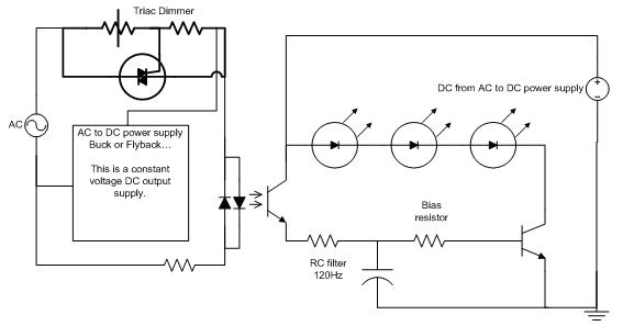 另一種方法是控制流經(jīng)LED串的電流量。這可能導(dǎo)致LED串的電壓下降,并造成輕微的色差。不過,如果觀察調(diào)光器打開情況下工作的白熾燈,也會看到明顯的色彩變化。