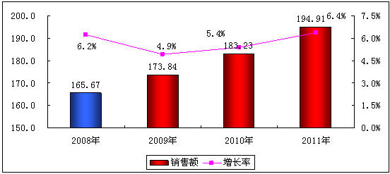 圖3 2009-2011年中國電源市場(chǎng)銷售額預(yù)測(cè)