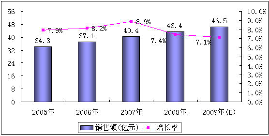 圖9:2005-2009年中國通信電源市場(chǎng)銷售額增長(zhǎng)情況