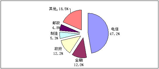 圖10 2008年通信電源應(yīng)用行業(yè)分布情況