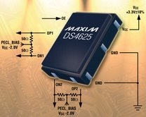 DS4625很好地解決了高頻、大電流設(shè)計(jì)中小尺寸陶瓷封裝常見的散熱問題。集成散熱焊盤為晶體提供有效的散熱通道,確保在-40°C至+70°C溫度范圍內(nèi)可靠工作。DS4625采用基頻AT切晶體技術(shù)制造(無泛音),基于PLL的低噪聲振蕩器采用Maxim的SiGe工藝設(shè)計(jì)。整個(gè)設(shè)計(jì)方案具有< ±7ppm (10年以上)的超低老化率和優(yōu)異的頻率穩(wěn)定性,由電壓、溫度、初始容差和老化引起的變化小于±50ppm。與競爭器件(如:基于SAW的振蕩器設(shè)計(jì))相比,DS4625能夠以更小的封裝尺寸提供同等級(jí)別的抖動(dòng)性能,在-40°C至+70°C較寬的溫度范圍內(nèi)具有更好的穩(wěn)定性(分別為±50ppm和±100ppm或更大)。