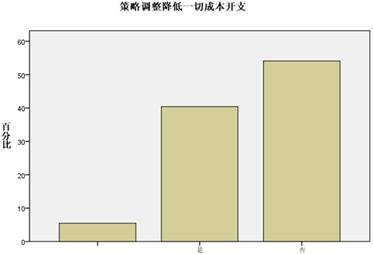 調查顯示,在危機影響中,企業做出了降低一切成本開支,重新調整供應商、加大市場開發力度,調整客戶群,抓住國家內需政策等一系列戰略性政策調整,其中,企業本身的調整降低一切成本開支和加大市場開發力度成為最重要部分,分別占40.4%和54.8,正所謂內因決定外因,從主要矛盾出發。而在外因當中,在重新挑選供應商、調整客戶群和抓住國家內需政策上,企業的選擇比例分別是15.1%,36.3和30.1%。(如下列組圖所示)