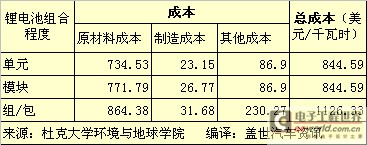 更具體來看,按照鋰電池組合程度,可分為鋰電池單位、鋰電池模塊、鋰電池組/包,其原材料成本、制造成本等具體見表1。