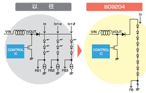 在液晶電視LED背光方面,Rohm新發(fā)布的BD9204F背光驅(qū)動器能驅(qū)動90×3列共270顆LED燈芯,從而非常適合LCD TV背光的應(yīng)用。福田明介紹,作為大型LCD背照光技術(shù),其關(guān)鍵點是列之間的亮度偏差以及一般由PWM進行調(diào)光。在大型LCD上適用LED背照光的情況下,各LED列的LED電流偏差會使LCD板面所產(chǎn)生的亮度不均勻。對于這個問題,Rohm公司通過導(dǎo)入獨有的電路技術(shù),將各LED列的電流匹配偏差控制在±1.5%以內(nèi),即使是大型LCD適用了LED背照光的情況下,也不會發(fā)生LCD板面亮度不均勻的現(xiàn)象。