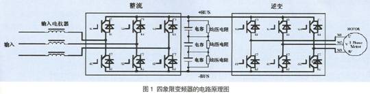 普通的變頻器大都采用二極管整流橋將交流電轉化成直流,然后采用IGBT逆變技術將直流轉化成電壓頻率皆可調整的交流電動機。這種變頻器只能工作在電動狀態,所以稱之為兩象限變頻器。由于兩象限變頻器采用二極管整流橋,無法實現能量的雙向流動,所以沒有辦法將電機回饋系統的能量送回電網。在一些電動機要回饋能量的應用中,比如電梯,提升,離心機系統,只能在兩象限變頻器上增加電阻制動單元。將電動機回饋的能量消耗掉。另外,在一些大功率的應用中,二極管整流橋對電網產生嚴重的諧波污染。