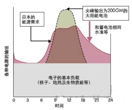 與市電同價的太陽能很可能加快引進在工廠和其他企業設施中,使它得以符合或超過日本政府的“2020年以前28GW,2030年以前53GW”的目標。日本新能源產業技術綜合開發機構(NEDO)推出的太陽能電池采用預測(如出版PV2030)中預估在2030年前將安裝高達201.8GW容量。此數字假設最大的采用率,每隔一間工廠20%的屋頂面積及所有房屋的1/3都裝有太陽能電池。