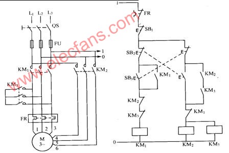 顯然,這套線路任何一種速度要轉換到另一種速度時,必須先按下停止按鈕,因為三個接觸器之間是電氣互鎖的。