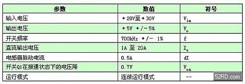 表1 典型的降壓電源系統技術規格