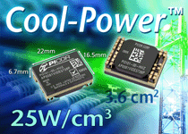 Cool-Power系列在專利零電壓開關(ZVS)拓撲技術基礎上,使用領先的控制芯片集成技術、先進的平面磁器件技術和高性能功率半導體技術,令產品的開關頻率超過1MHz, 效率高達87% 。動態負載的快速瞬態響應降低了對輸出大電容的需求,同時產品固有的低噪聲和高頻特性使得電磁干擾(EMI)性能顯著改善。
