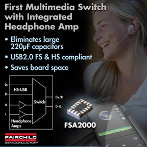 飛兆半導體公司(Fairchild Semiconductor)專注開發(fā)提升用戶滿意度以及使產(chǎn)品取得市場成功的模擬和功率功能,為手機設計人員提供一款集成有無電容耳機音頻放大器的自動選擇高速USB開關FSA2000,這是業(yè)界首款同類型集成式USB開關器件,而且能夠減少元件數(shù)量、電路板占用空間并降低材料清單(BOM)成本。