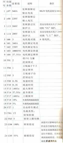 表1示出變頻器參數(shù)設(shè)置及其說(shuō)明