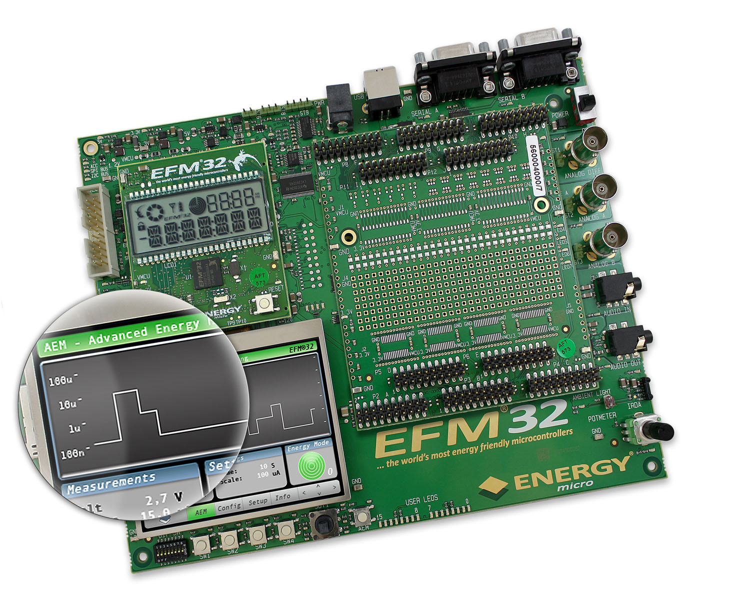 圖1:節(jié)能EFM32 Gecko微控制器的開發(fā)工具包有先進(jìn)的能源監(jiān)控系統(tǒng)。