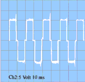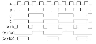 由14級(jí)串行二進(jìn)制計(jì)數(shù)/分配器CD4020B構(gòu)成分頻電路,分頻信號(hào)來自SG3525A的振蕩器輸出端引腳4。圖4中的A、B、C分別代表振蕩器脈沖經(jīng)8、9、10級(jí)分頻后的波形,其頻率分別為fA=fOSC/28,fB="fOSC/29",fC="fOSC/210"。分相電路由單片兩輸入端四與非門CD4011BC及外圍器件組成,將信號(hào)ABC邏輯組合成逆變橋所需要的驅(qū)動(dòng)脈沖(A+B)C與(A+B)C信號(hào)。該驅(qū)動(dòng)信號(hào)具有共同死區(qū),信號(hào)頻率約為50Hz。