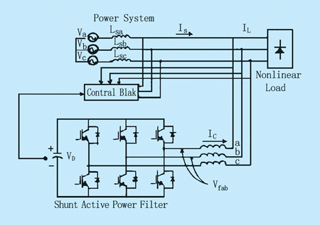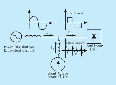 APF是一種新型可動態抑制諧波的PE裝置。其濾波方式為:先從補償對象中檢測出諧波電流,再利用可控的功率半導體器件(補償裝置)向電網注入與諧波源諧波分量(I或U)幅值相等、相位相反的諧波分量(I或U),使電源的總諧波為零,達到實時補償諧波的目的。經經驗證明,APF是抑制諧波和補償無功的理想和靈活的可行方案,下面予以重點介紹。