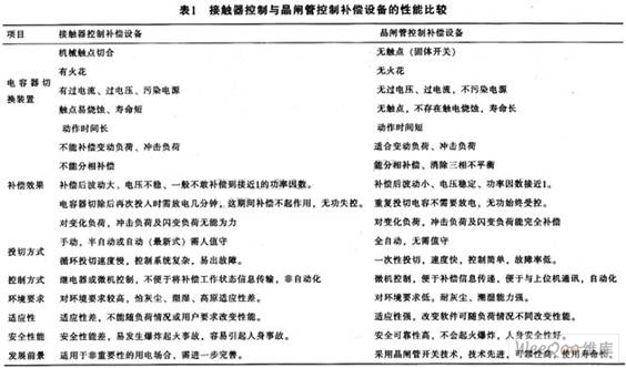 利用接觸器控制補償設備與用晶閘管控制方法來補償設備的性能比較如表1所列。