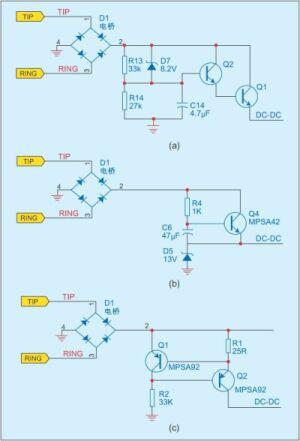 以前使用的普通電話機只需要很小功率就可滿足正常通話的要求。它們利用交換機的饋電和簡單的并聯或串聯線性穩壓電路提供的幾毫安電流,驅動通話電路工作,而不用過多關心效率與過流保護的問題。
