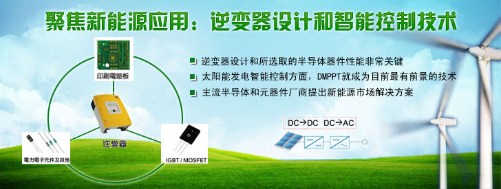 太陽能發電系統對半導體器件有什么樣的要求?這篇文章可以告訴大家。A/D轉換器、整流器、IGBT模塊、驅動、傳感、MCU以及電容等元器件廠商都有望在新得市場上獲得契機。這些器件中,最重要的是逆變器,它的任務是把光伏單元可變的直流電壓輸出轉換為清潔的50Hz或60Hz的正弦電壓源,為了保證輸出電壓的穩定,需要一系列器件的配合,例如傳感器來跟蹤太陽方位角、A/D轉換器來實現數據轉換,MCU來實現穩定輸出的算法……那么主流半導體和元器件廠商是如何針對新能源市場打造解決方案的?我們將業界的趨勢和熱點作一次總結,希望對讀者提供一定參考。